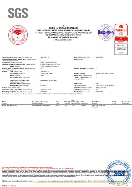 (Laboratuar analizleri ve denetim uygulamalarında İsviçre Merkezli SGS Laboratuvarları çözüm ortağımızdır.)