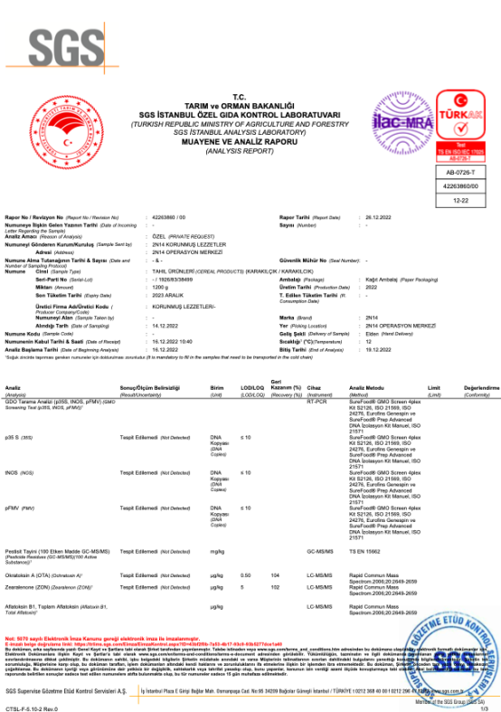 (Laboratuar analizleri ve denetim uygulamalarında İsviçre Merkezli SGS Laboratuvarları çözüm ortağımızdır.)