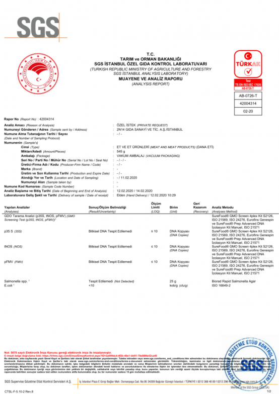 (Laboratuar analizleri ve denetim uygulamalarında İsviçre Merkezli SGS Laboratuvarları çözüm ortağımızdır.)