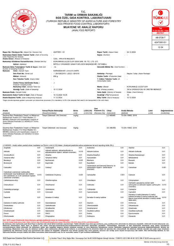 (Laboratuar analizleri ve denetim uygulamalarında İsviçre Merkezli SGS Laboratuvarları çözüm ortağımızdır.)