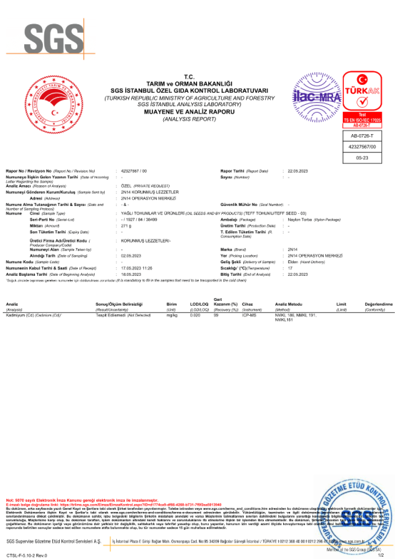 (Laboratuar analizleri ve denetim uygulamalarında İsviçre Merkezli SGS Laboratuvarları çözüm ortağımızdır.)