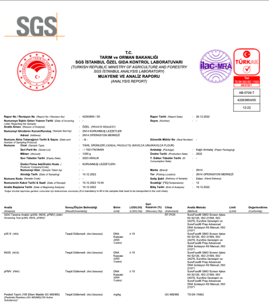 (Laboratuar analizleri ve denetim uygulamalarında İsviçre Merkezli SGS Laboratuvarları çözüm ortağımızdır.)