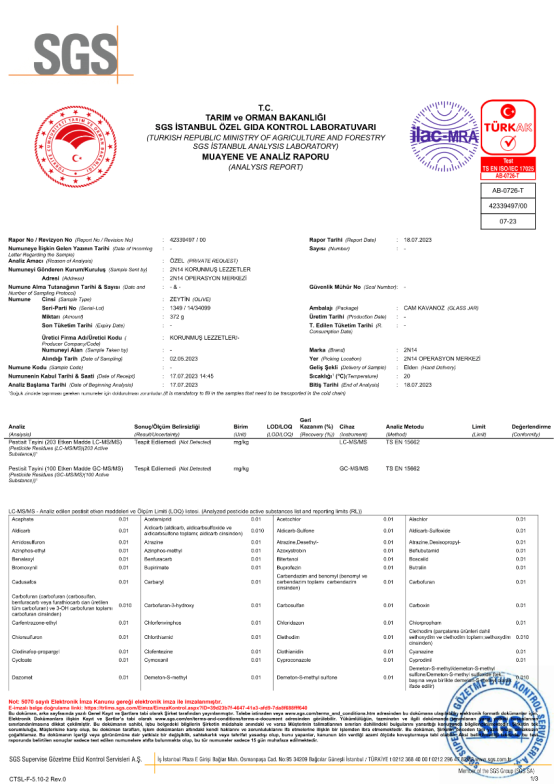 (Laboratuar analizleri ve denetim uygulamalarında İsviçre Merkezli SGS Laboratuvarları çözüm ortağımızdır.)